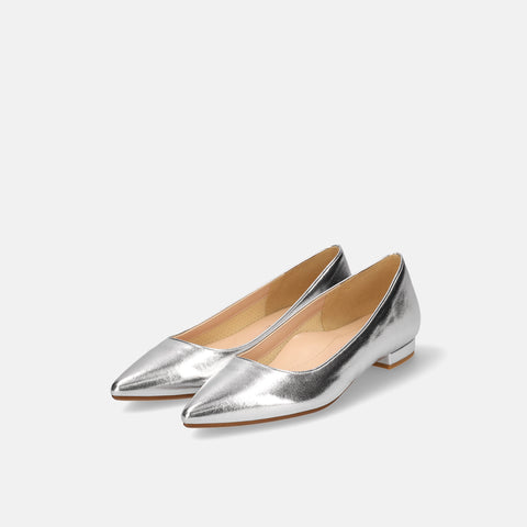 10% OFF: 2024SS: iCoN COLORS: Pointed Toe Smooth Flat Shoes (C20143) Silver