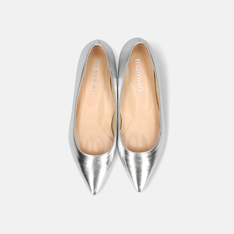 10% OFF: 2024SS: iCoN COLORS: Pointed Toe Smooth Pumps (C76533) Silver