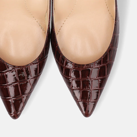 15% OFF: iCoN COLORS: Pointed toe crocodile pumps (C76534) Bordeaux CR
