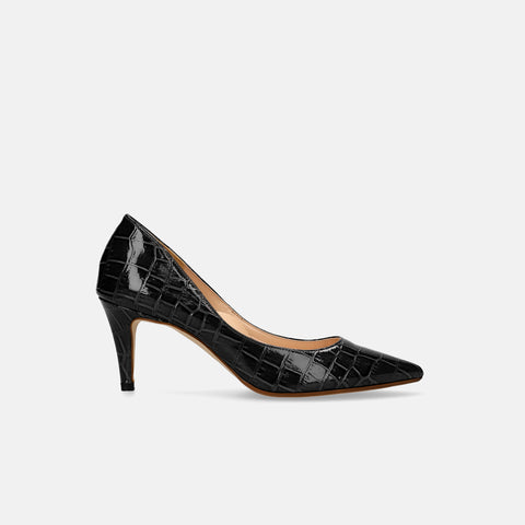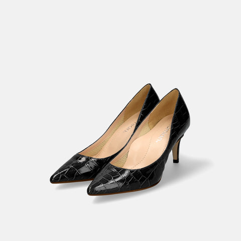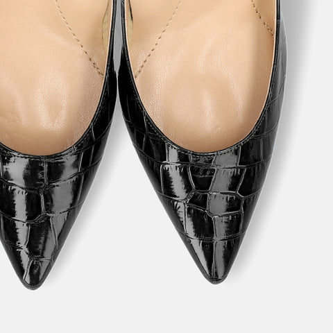 15% OFF: iCoN COLORS: Pointed toe croc embossed pumps (C76534) Black CR