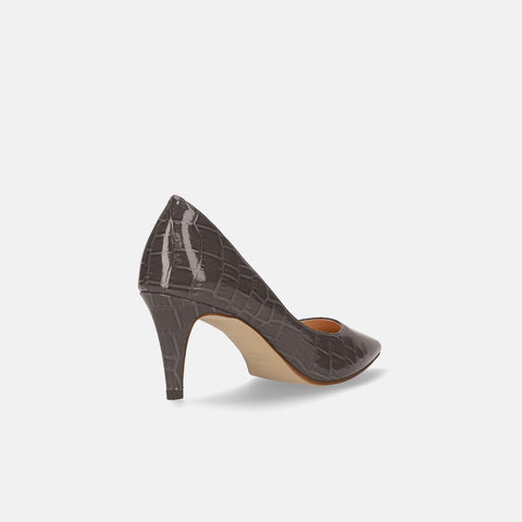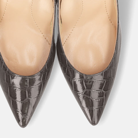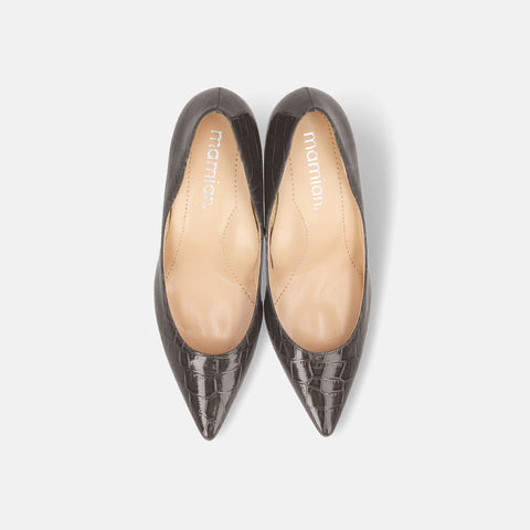 Last one 15% off: iCoN COLORS: Pointed toe crocodile embossed pumps (C76534) charcoal CR
